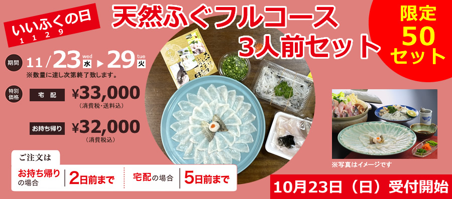 11月29日(いいふくの日)〜天然ふぐフルコースセット〜