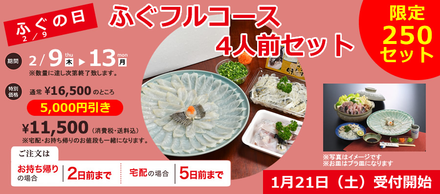 内 容: ふぐフルコース4人前 (お皿はプラ皿になります)